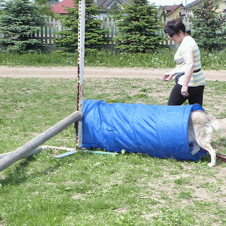 Ale z czasem przywykłam to tej, bądź co bądź nietypowej formy kursu, tak, że chodzenie na obroży i smyczy, chodzenie po torze przeszkód, pod krzesłami np. wyszukiwanie zapachów - tropienie nie budziły przerażenia :).