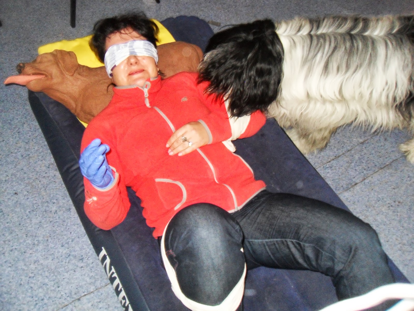 Ale z czasem przywykłam to tej, bądź co bądź nietypowej formy kursu, tak, że chodzenie na obroży i smyczy, chodzenie po torze przeszkód, pod krzesłami np. wyszukiwanie zapachów - tropienie nie budziły przerażenia :).